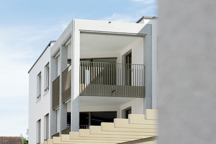Die Umgebungsgestaltung greift das historische Wingertkonzept auf: Fortgeführte Wingertmauern, einheimische Bäume, Zierreben und Spalierpflanzen strukturieren die Aussenräume und schaffen Bezug zur Natur. Klassische Rasenflächen wurden bewusst reduziert, um Oasen der Ruhe und Privatsphäre zu erzeugen. Die harmonische Einbettung der Freiräume und die hochwertige Materialwahl verleihen dem Quartier einen besonderen Charakter, der Tradition und zeitgemässes Wohnen auf stimmige Weise verbindet.