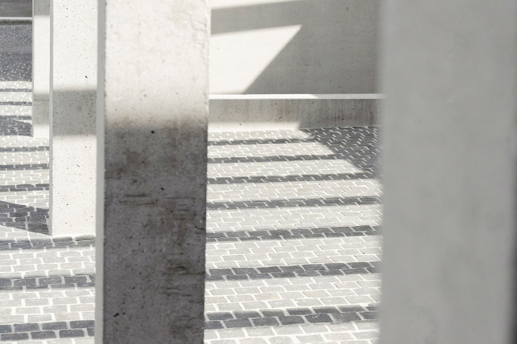 Den Auftakt der Überbauung bildet der Brunnenplatz, der als einladender Begegnungsraum gestaltet wurde. Der Brunnen schafft eine ruhige, angenehme Atmosphäre, während die umliegende Begrünung einen geschützten Rahmen bildet. Ein Ort, der Identität und Aufenthaltsqualität verleiht und den Weg in den Innenhof lenkt.
